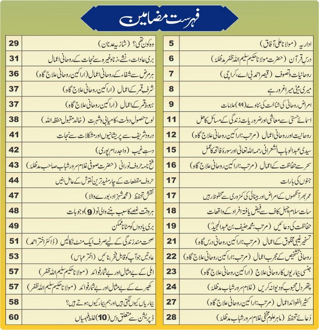 10th Issue of Volume 11. A magazine in urdu language mainly based on spiritual treatment and learning. Many topics on ISLAM, SUFISM, SOCIAL PROBLEMS, SELF HELP, PSYCHOLOGY, HEALTH, SPIRITUAL TREATMENT etc. A Very useful magazine for everyone.