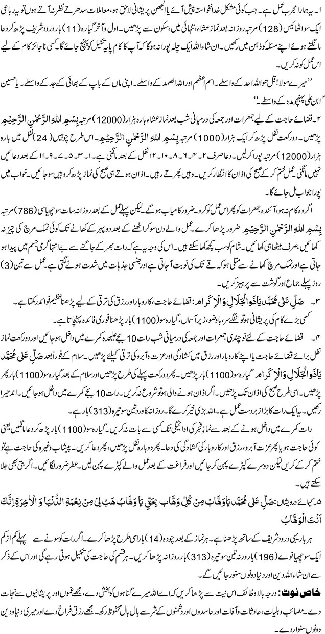 مجرب روحانی اعمال برائے حل المشکلات و قضائے حاجات