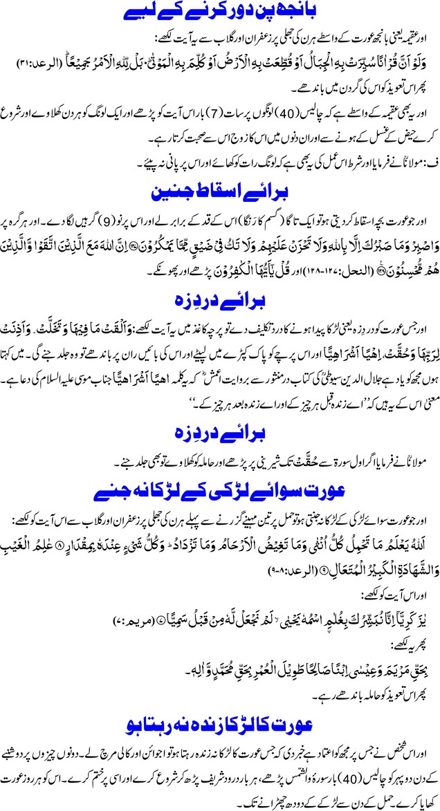 مجرب اعمال برائے خواتین
