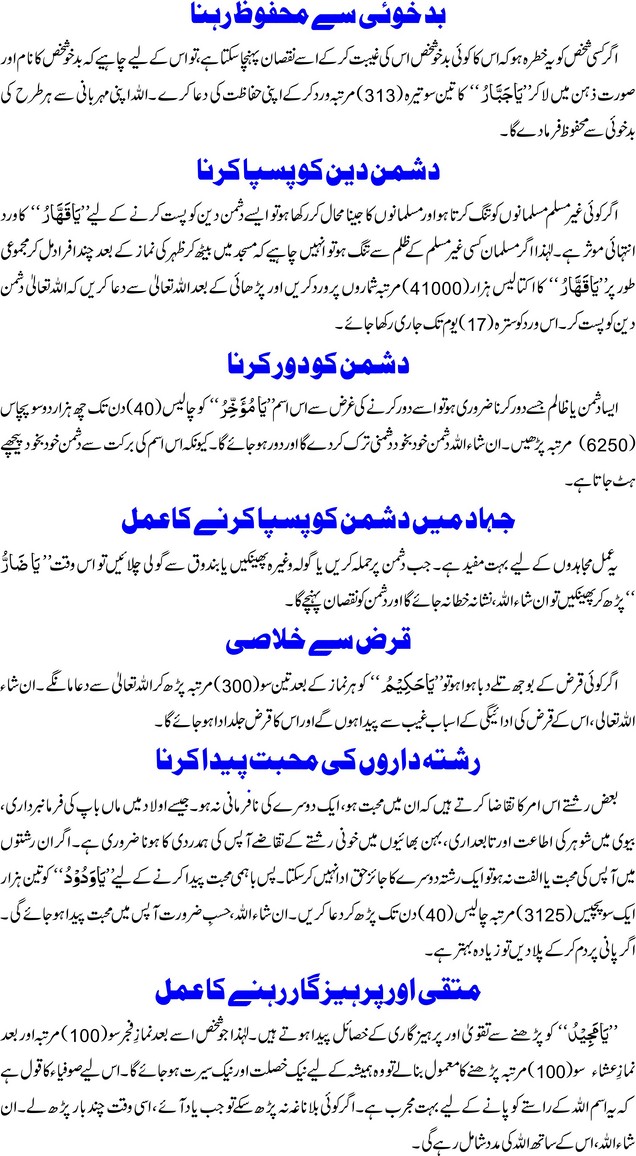وظائف اسماء الحسنی