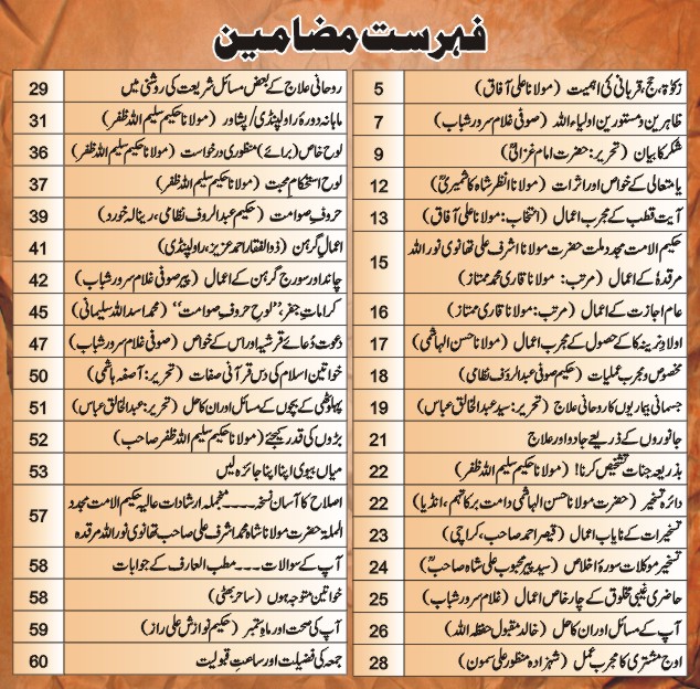 http://issuu.com/darulamal/docs/khazina-e-ruhaniyaat__sep_16_