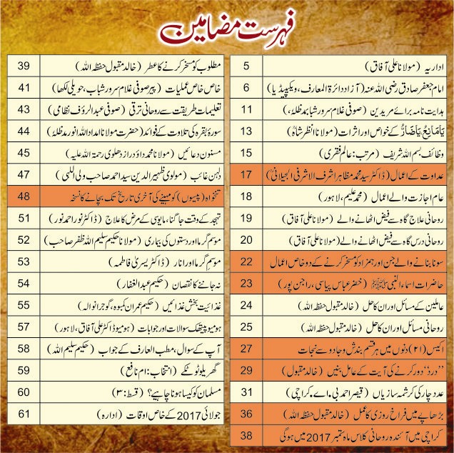 http://issuu.com/darulamal/docs/khazina-e-ruhaniyaat__jul_2017_